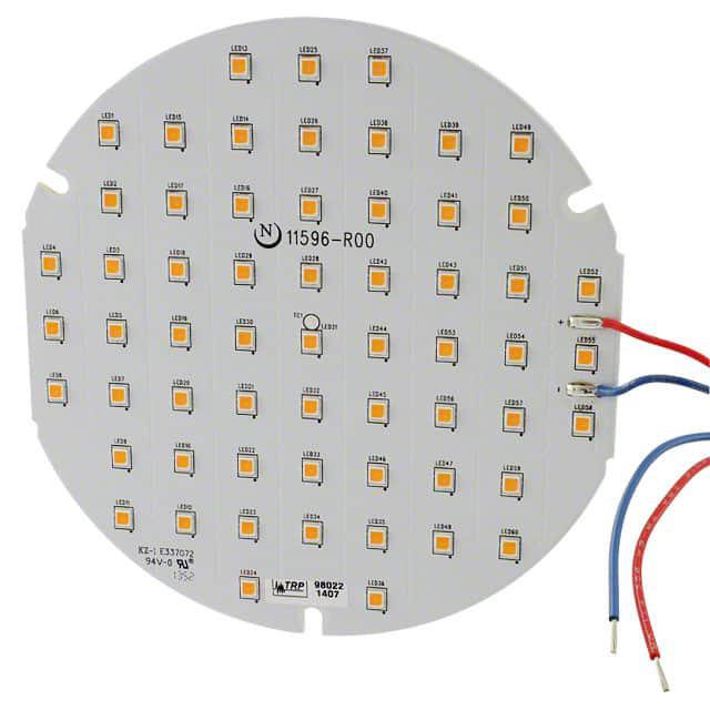 This is manufactured by Thomas Research Products. The manufacturer part number is 98022. It is assigned with possible HTSUS value of 8541.41.0000. The product is rohs compliant. The given current test of the product is [Current -Test]. In addition, 3000k is the given CCT value of the product. It comes in led module configuration. It is supplied with a flat lens. Furthermore, 120° is the viewing angle of the product. The product is available in round configuration. The luminous flux of the product is 2100lm (typ). It is shipped in box. The product's diameters include 119.38mm dia. The product's test temperature is 25°c. The typical forward voltage (Vf) of the product is 35.9v. The product is supplied with CRI number 83 (typ). Its typical moisture sensitivity level is 1 (unlimited). It has a classic white, warm colour. The product round, is a highly preferred choice for users. In addition, the height is 2.08mm. 130 lm/w of watts at test current. The product is designated with the ear99 code number