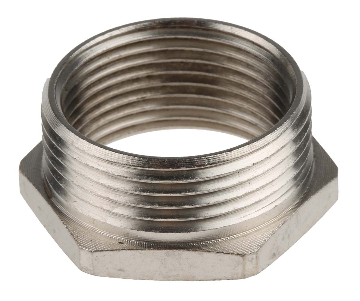 This is Thread Converter Cable Conduit Fitting Brass Nickel Plated 21mm nominal size PG21-M25 manufactured by RS Pro. The manufacturer part number is 623-956. A quality product with a nice nickel plated finish. The product is made from highly stable and reliable brass. It has a typical thread size of pg21 → m25.