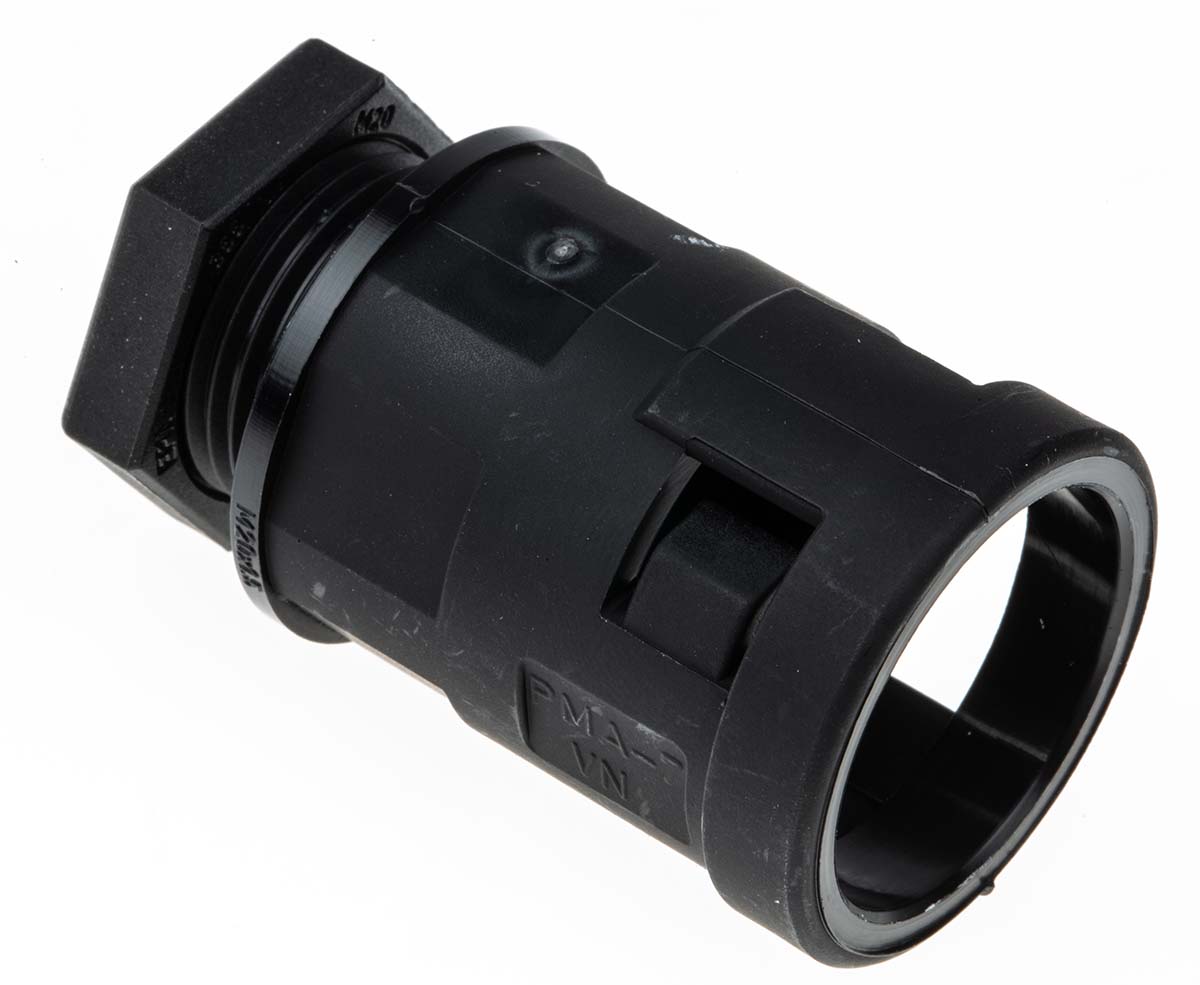 This is Straight Cable Conduit Fitting PA 6 Black Black 17mm nominal size IP68 M20 manufactured by PMA. The manufacturer part number is BVNV-M207. A quality product with a nice black finish. The product is made from highly stable and reliable pa 6. It has a typical thread size of m20.