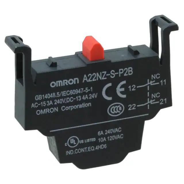 This is manufactured by Omron Automation and Safety. The manufacturer part number is A22NZ-S-P2B. It is assigned with possible HTSUS value of 8536.50.9065. It is shipped in box. The product a22n, is a highly preferred choice for users. Moreover, it has screwless clamp terminal style. Its typical moisture sensitivity level is not applicable. Compatible with series omron, a22n. It has an integral dpst-nc circuit. The given contact rating of the product and its voltage includes 10a @ 120vac. It has a long 13 weeks standard lead time. The product requires switch body. Moreover, it corresponds to a22nz, a base product number of the product. The product is designated with the ear99 code number