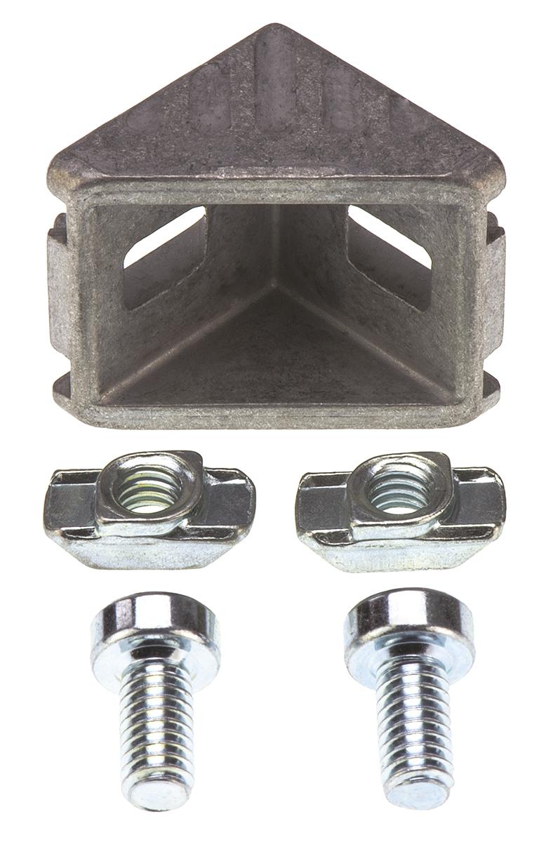 Angle Brackets Bosch Rexroth angle brackets can be used to make a strong connection between 20 x 20, 30 x 30, 40 x 40, 45 x 45 or 50 x 50 profiles at an angle of 90° . Features & Benefits Brackets are unpainted Includes non-turning centring lugs for rapid and precise alignment Product Application Information Used for shelf supports, structure reinforcement, securing systems to the floor and so on.