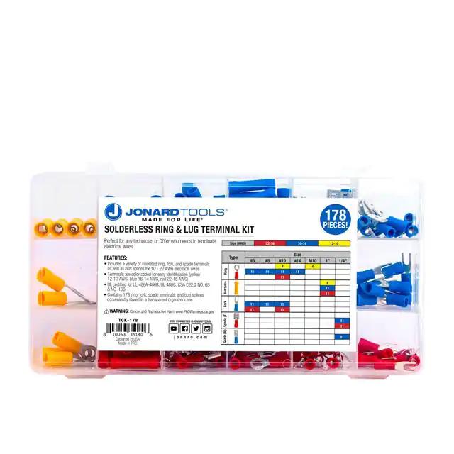 This is manufactured by Jonard Tools. The manufacturer part number is TCK-178. The termination is designed to provide robust applications in a variety of specific settings. It is assigned with possible HTSUS value of 8536.90.4000. It is shipped in box. The product is rohs3 compliant. In addition, it is reach unaffected. Its typical moisture sensitivity level is not applicable. It has a long 1 weeks standard lead time. The product is designated with the ear99 code number