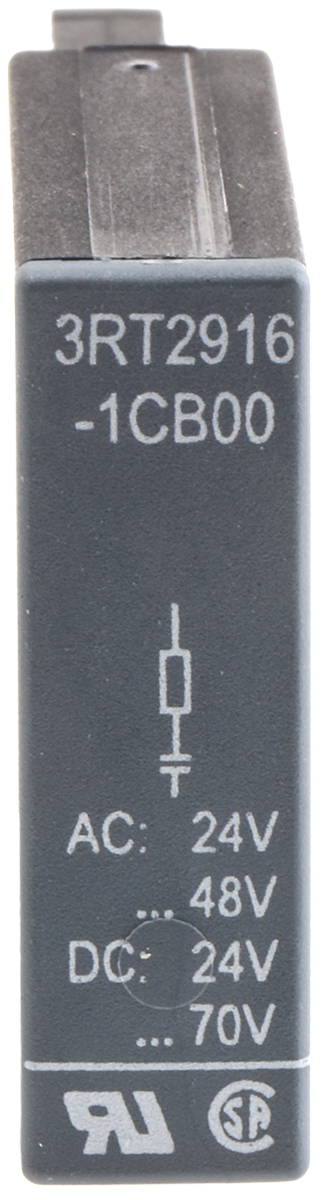 This is Contactor Surge Suppressor for use with SIRIUS Contactors manufactured by Siemens. The manufacturer part number is 3RT2916-1CB00. The product is available in clip-on configuration. Moreover, the product has a nominal 24 → 48 v ac, 24 → 70 v dc voltage rating. The product 3rt2, is a highly preferred choice for users. It is a type of surge suppressor accessory. The product is available in s00 size.