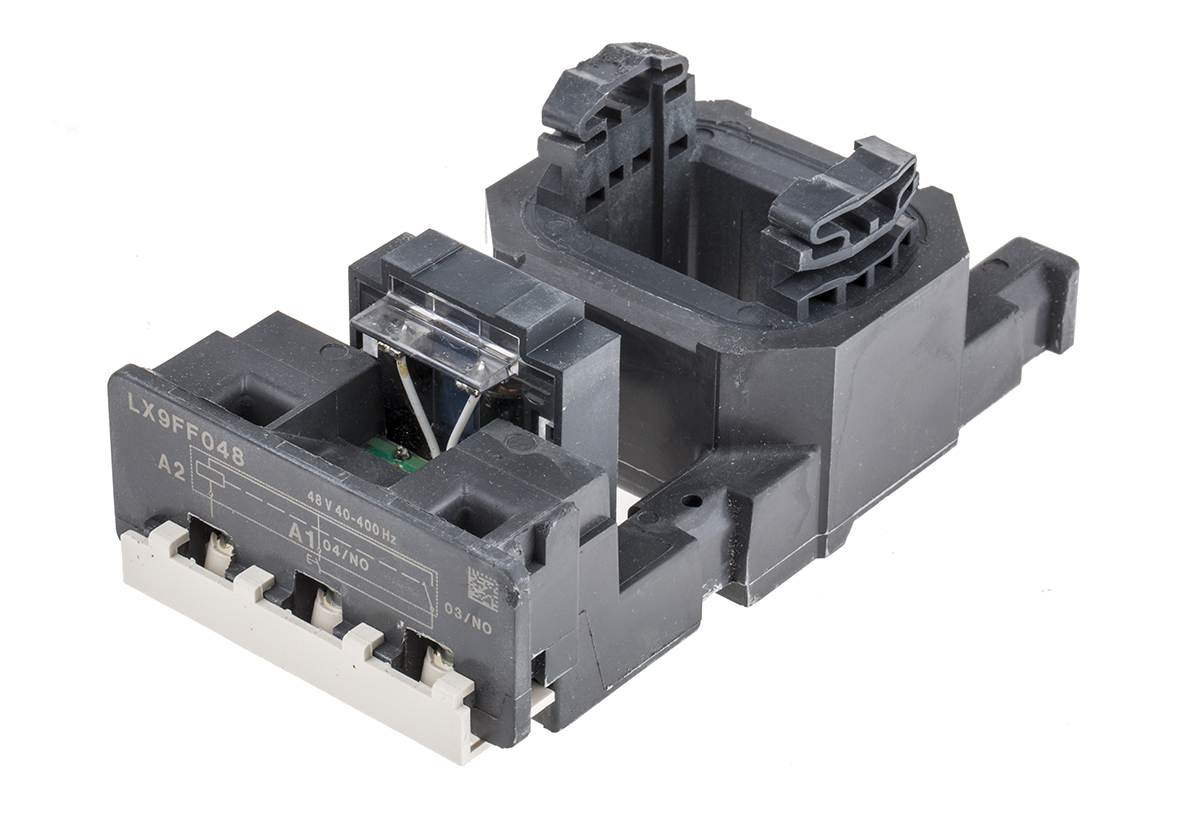 This is Contactor Coil for use with LC1F115 LC1F150 manufactured by Schneider Electric. The manufacturer part number is LX9FF048. Moreover, the product has a nominal 48 v ac voltage rating. The product lx9f, is a highly preferred choice for users. It is a type of contactor coil accessory.