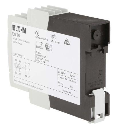 This is Overload Relay - NO/NC 3 A Contact Rating 2 W 24 → 240 V ac/dc manufactured by Eaton. The manufacturer part number is 066166 | EMT6. Whereas, the minimum operating temperature of the product is -25°c. The product emt6, is a highly preferred choice for users. Its accurate length is 102mm. Furthermore, the product is 78mm wide. The product comes in 22.5mm depth. It has a maximum operating temperature of +45°c. The terminal is a screw type.