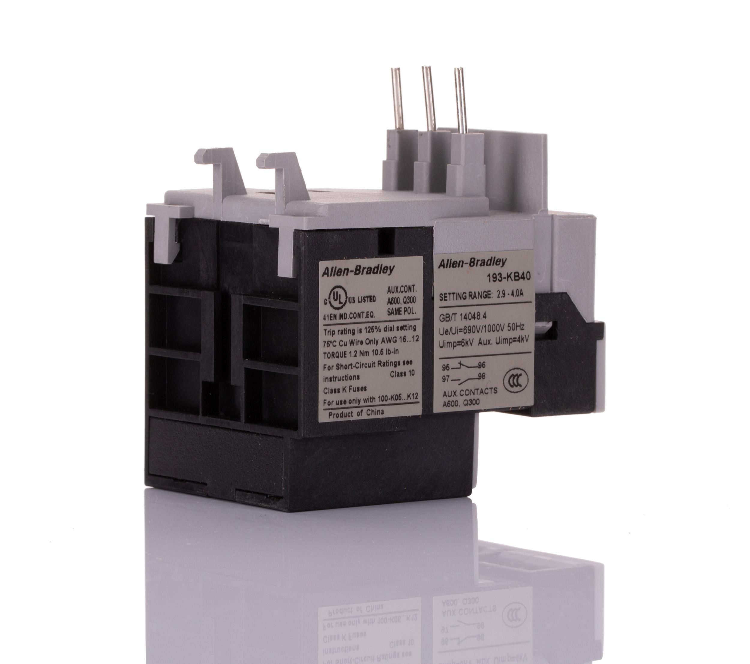 This is Overload Relay 2.9 → 4 A 4 A 6 W 690 V ac manufactured by Allen Bradley. The manufacturer part number is 193-KB40. Whereas, the minimum operating temperature of the product is -20°c. The product 193-k, is a highly preferred choice for users. Its accurate length is 50mm. Furthermore, the product is 44.9mm wide. The product comes in 78.7mm depth. It has a maximum operating temperature of +60°c. The terminal is a screw type.