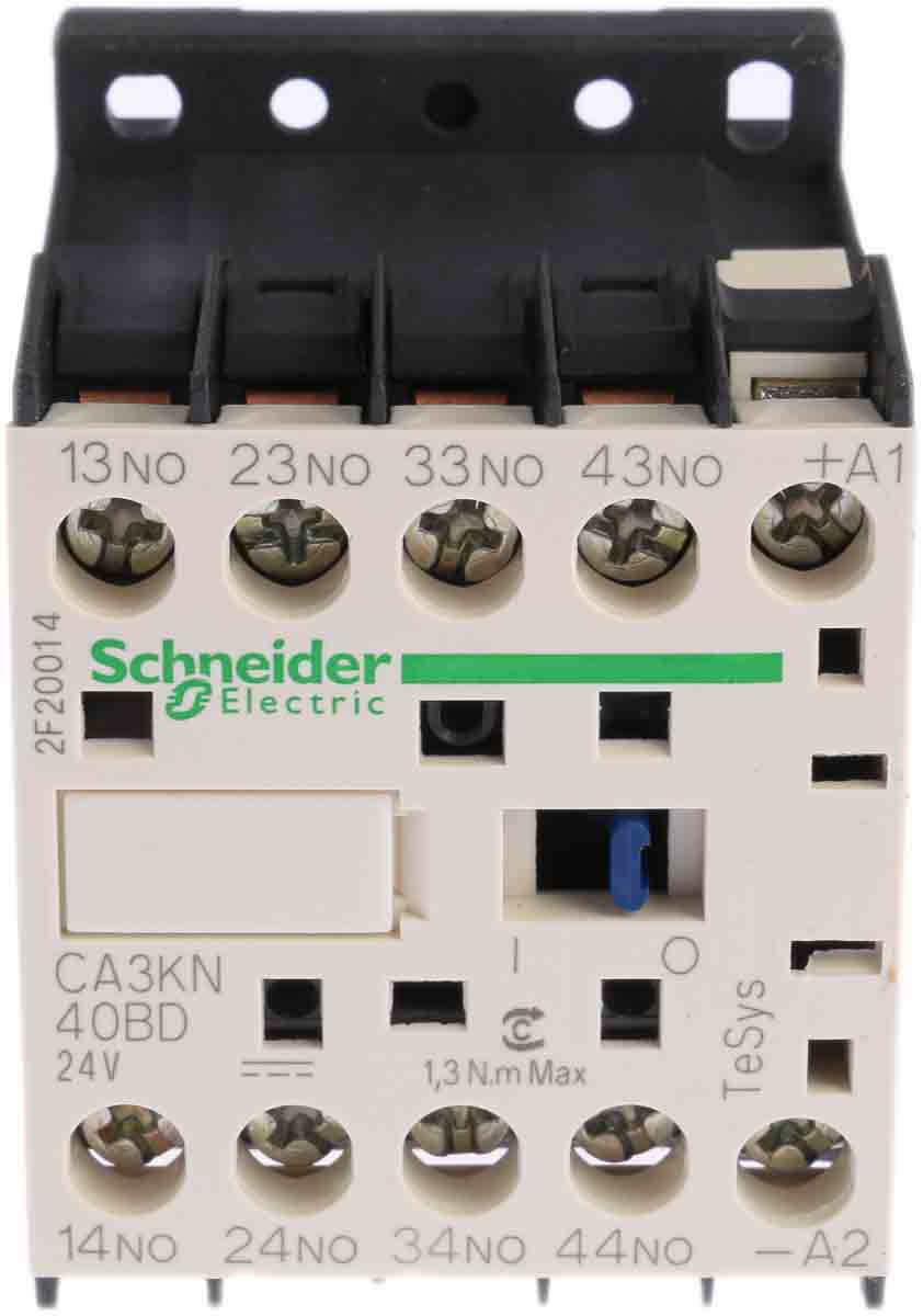 This is Control Relay 4NO 10 A manufactured by Schneider Electric. The manufacturer part number is CA3KN40BD. The product ca3kn, is a highly preferred choice for users. Its accurate length is 58mm. Furthermore, the product is 45mm wide. The product comes in 57mm depth. The terminal is a screw type.