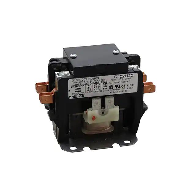 This is manufactured by TE Connectivity Potter & Brumfield Relays. The manufacturer part number is 3100-20T18999CL. It is assigned with possible HTSUS value of 8536.49.0065. The product is rohs3 compliant. The coil voltage of the product is 120vac. Moreover, it has screw terminal, quick connect - 0.250" (6.3mm) terminal style. The product has -40°c ~ 65°c operating temperature range. It holds up to 250ohms coil resistance. The product's switching voltage is 600vac - max. Robust coil power of 7va. In addition, it is reach affected. On the other hand, 88 vac is the given crucial/must operating voltage. It is shipped in bulk. It also has a dpst-no (dm) (2 form x) contact form. Its typical moisture sensitivity level is not applicable. While the must release voltage is a 20 vac. It has a long 44 weeks standard lead time. It has a contact current rating of 40 a. The splendid features of the product include insulation - class b. The product is available in chassis mount configuration. The product 3100, products unlimited, is a highly preferred choice for users. The product is designated with the ear99 code number Moreover, it corresponds to 3100-20, a base product number of the product. The product is made from sturdy silver cadmium oxide (agcdo) materials.