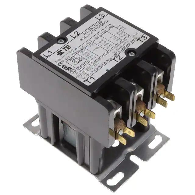 This is manufactured by TE Connectivity Potter & Brumfield Relays. The manufacturer part number is 3100Y30J16999CJ. It is assigned with possible HTSUS value of 8536.49.0065. The product is rohs3 compliant. The coil voltage of the product is 120vac. Moreover, it has screw terminal, quick connect - 0.250" (6.3mm) terminal style. The product has -40°c ~ 65°c operating temperature range. It holds up to 45ohms coil resistance. The product's switching voltage is 600vac - max. Robust coil power of 14va. In addition, it is reach affected. On the other hand, 93 vac is the given crucial/must operating voltage. It is shipped in bulk. It also has a 3pst-no (dm) (3 form x) contact form. Its typical moisture sensitivity level is 1 (unlimited). While the must release voltage is a 20 vac. It has a long 22 weeks standard lead time. It has a contact current rating of 50 a. The splendid features of the product include insulation - class b. The product is available in chassis mount configuration. The product 3100, products unlimited, is a highly preferred choice for users. The product is designated with the ear99 code number Moreover, it corresponds to 3100, a base product number of the product. The product is made from sturdy silver cadmium oxide (agcdo) materials.