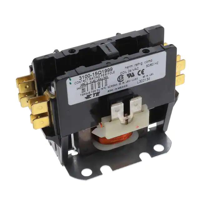 This is manufactured by TE Connectivity Potter & Brumfield Relays. The manufacturer part number is 3100-15Q1999. It is assigned with possible HTSUS value of 8536.41.0045. The product is rohs3 compliant. The coil voltage of the product is 24vac. Moreover, it has screw terminal, quick connect - 0.250" (6.3mm) terminal style. The product has -40°c ~ 65°c operating temperature range. It holds up to 16.5ohms coil resistance. The product's switching voltage is 600vac - max. Robust coil power of 5.3va. In addition, it is reach affected. On the other hand, 18 vac is the given crucial/must operating voltage. It is shipped in bulk. It also has a spst-no (dm) (1 form x) contact form. Its typical moisture sensitivity level is 1 (unlimited). While the must release voltage is a 6 vac. It has a long 29 weeks standard lead time. It has a contact current rating of 25 a. The splendid features of the product include insulation - class b. The product is available in chassis mount configuration. The product 3100, products unlimited, is a highly preferred choice for users. The product is designated with the ear99 code number Moreover, it corresponds to 3100-15, a base product number of the product. The product is made from sturdy silver cadmium oxide (agcdo) materials.