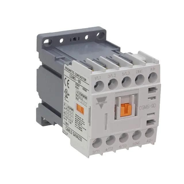 This is manufactured by Carlo Gavazzi Inc.. The manufacturer part number is CGMS-9D-24S-01. It is assigned with possible HTSUS value of 8538.90.8180. The coil voltage of the product is 24vdc. Moreover, it has screw terminal terminal style. The product's switching voltage is 690vac - max. In addition, it is reach unaffected. It is shipped in bulk. It also has a 3pst-no (3 form a) contact form. Its typical moisture sensitivity level is not applicable. It has a long 24 weeks standard lead time. It has a contact current rating of 9 a. The splendid features of the product include auxiliary contacts. The product is available in chassis mount, din rail configuration. The product cgms, is a highly preferred choice for users. The product is designated with the ear99 code number Moreover, it corresponds to cgms-9, a base product number of the product.