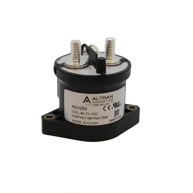This is manufactured by Altran Magnetics, LLC. The manufacturer part number is AEV250-MA. It is assigned with possible HTSUS value of 8536.41.0045. The product is rohs compliant. The coil voltage of the product is 36vdc. Moreover, it has stud, wire leads terminal style. The product has -40°c ~ 85°c operating temperature range. It has a coil current of 130 ma. The product's switching voltage is 900vdc - max. On the other hand, 9 vdc is the given crucial/must operating voltage. It is shipped in bulk. Its typical moisture sensitivity level is 1 (unlimited). The operating time of the product is 25 ms. While the must release voltage is a 6 vdc. It has a contact current rating of 500 a. The splendid features of the product include auxiliary contacts, economizer, sealed - hermetically. The product is available in chassis mount configuration. The product aev250, is a highly preferred choice for users. While 12 ms is its release time. The product is designated with the ear99 code number Moreover, it corresponds to aev250, a base product number of the product.