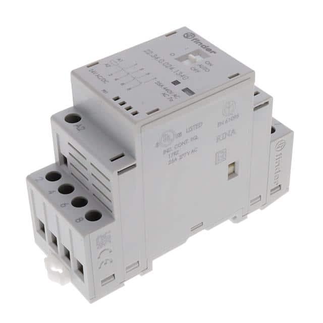 This is manufactured by Finder Relays, Inc.. The manufacturer part number is 22.34.0.024.1340. It is assigned with possible HTSUS value of 8536.41.0045. The product is rohs3 compliant. The coil voltage of the product is 24vac/dc. Moreover, it has screw terminal terminal style. The product has -20°c ~ 50°c operating temperature range. It holds up to 289ohms coil resistance. It has a coil current of 83 ma. The product's switching voltage is 250vac - nom. Robust coil power of 2.2w. In addition, it is reach unaffected. On the other hand, 19.2 vac/dc is the given crucial/must operating voltage. It is shipped in box. It also has a 4pst-no (4 form a) contact form. Its typical moisture sensitivity level is not applicable. The operating time of the product is 18 ms. While the must release voltage is a 2.4 vac/dc. It has a long 1 weeks standard lead time. It has a contact current rating of 25 a. The splendid features of the product include lighted indicator, mechanical indicator, auto-on-off selector. The product is available in din rail configuration. The product 22, is a highly preferred choice for users. While 40 ms is its release time. The product is designated with the ear99 code number The product is made from sturdy silver nickel (agni) materials.