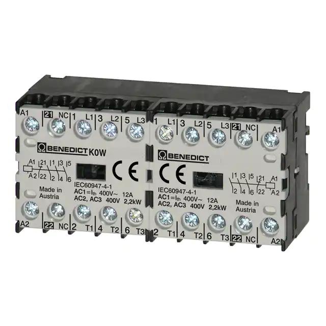 This is manufactured by Benedict GmbH. The manufacturer part number is K0W05D10MC 48. The coil voltage of the product is 48vac. The splendid features of the product include auxiliary contacts. It is assigned with possible HTSUS value of 8536.49.0065. It is shipped in box. The product k0, is a highly preferred choice for users. It also has a 3pst-no (3 form a) contact form. The product is rohs3 compliant. Moreover, it has screw terminal terminal style. The product's switching voltage is 480v. The product is available in din rail configuration. The product has -40°c ~ 90°c operating temperature range. It has a contact current rating of 5 a.
