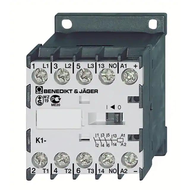 This is manufactured by Benedict GmbH. The manufacturer part number is K1-09D01 =24. It is assigned with possible HTSUS value of 8536.49.0065. The product is rohs3 compliant. The coil voltage of the product is 24vdc. Moreover, it has screw terminal terminal style. The product has -40°c ~ 90°c operating temperature range. The product's switching voltage is 600v. It is shipped in box. It also has a 3pst-no (3 form a) contact form. It has a contact current rating of 9 a. The splendid features of the product include auxiliary contacts. The product is available in chassis mount, din rail configuration. The product k1, is a highly preferred choice for users. The product is designated with the ear99 code number
