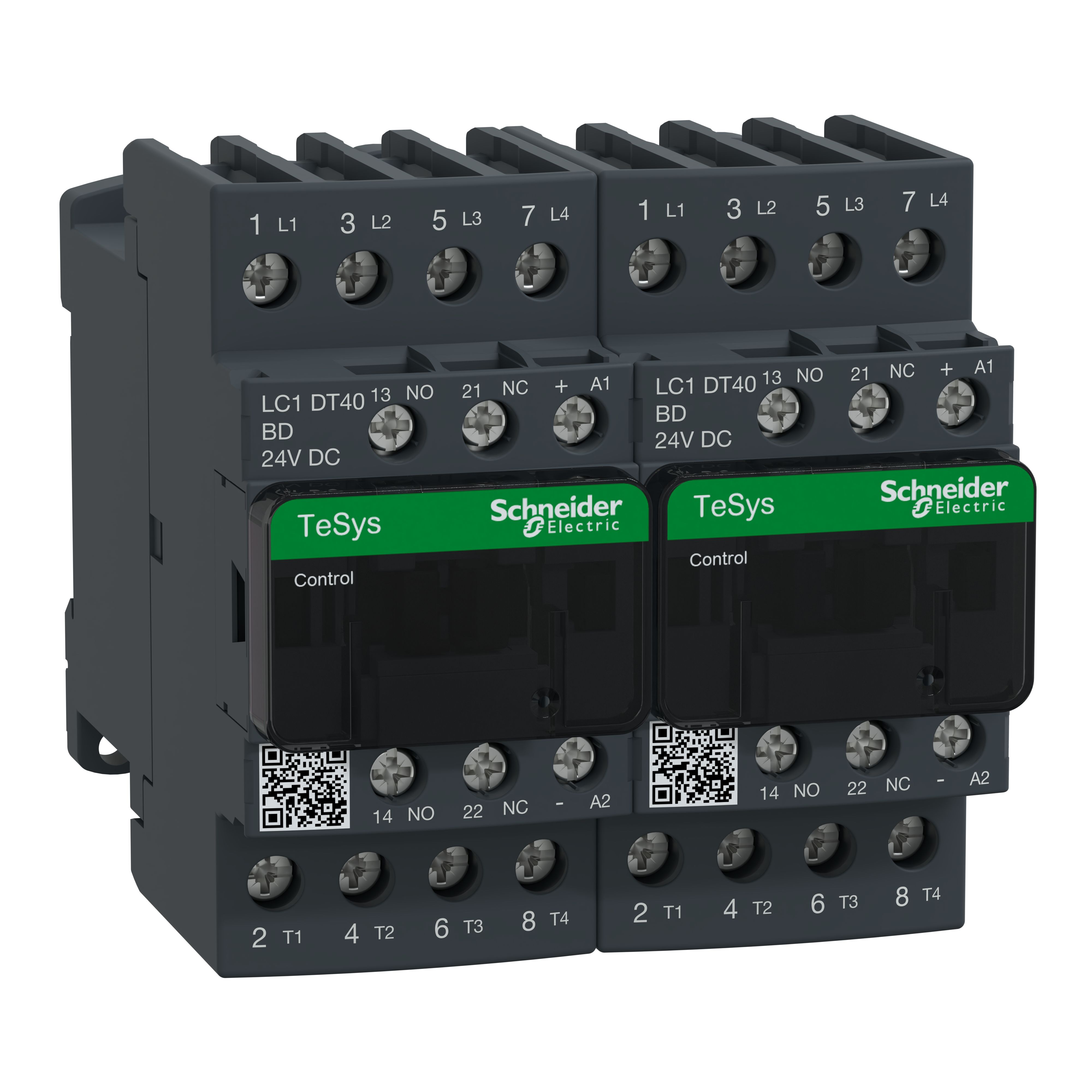 This is Tesys D LC2D 4 Pole Contactor 24 V dc Coil manufactured by Schneider Electric. The manufacturer part number is LC2DT40BD. It performs basic function of reversing. The product lc2d, is a highly preferred choice for users. The coil voltage of the product is 24 v dc. Its accurate length is 91mm. Furthermore, the product is 90mm wide. The product comes in 98mm depth. Whereas, the minimum operating temperature of the product is -5°c. It has a maximum operating temperature of +60°c. It has equipped with 4 poles. The terminal is a cable type.