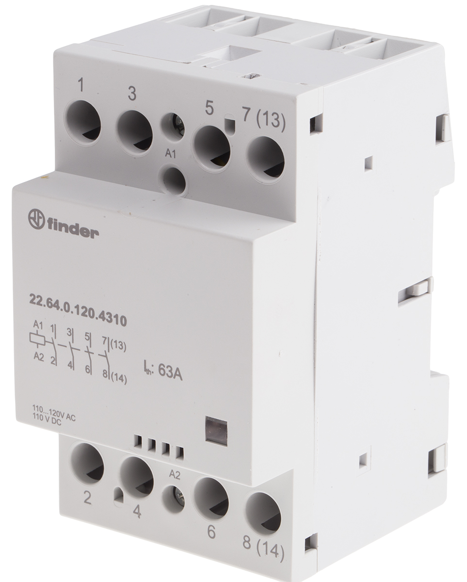 This is 4NO DIN Rail Non-Latching Relay 125V ac Coil 63 A manufactured by Finder. The manufacturer part number is 22.64.0.120.4310. The product 22 series, is a highly preferred choice for users. The coil voltage of the product is 125 v ac. Its accurate length is 53.5mm. The product comes in 63.1mm depth. Whereas, the minimum operating temperature of the product is -5°c. It has a maximum operating temperature of +55°c. It has equipped with 4 poles. The terminal is a screw type.