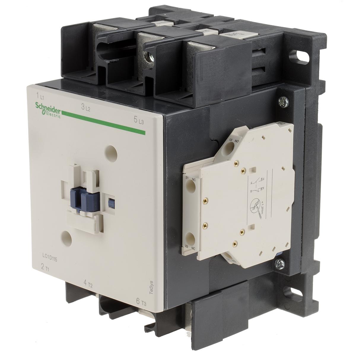 This is Tesys D LC1D 3 Pole Contactor 3NO (Main) NO/NC (Auxiliary) 115 A 220 V ac Coil manufactured by Schneider Electric. The manufacturer part number is LC1D1156M5. The product lc1d, is a highly preferred choice for users. The coil voltage of the product is 220 v ac. Its accurate length is 158mm. Furthermore, the product is 120mm wide. The product comes in 136mm depth. It has equipped with 3 poles. The terminal is a lug ring terminal type.
