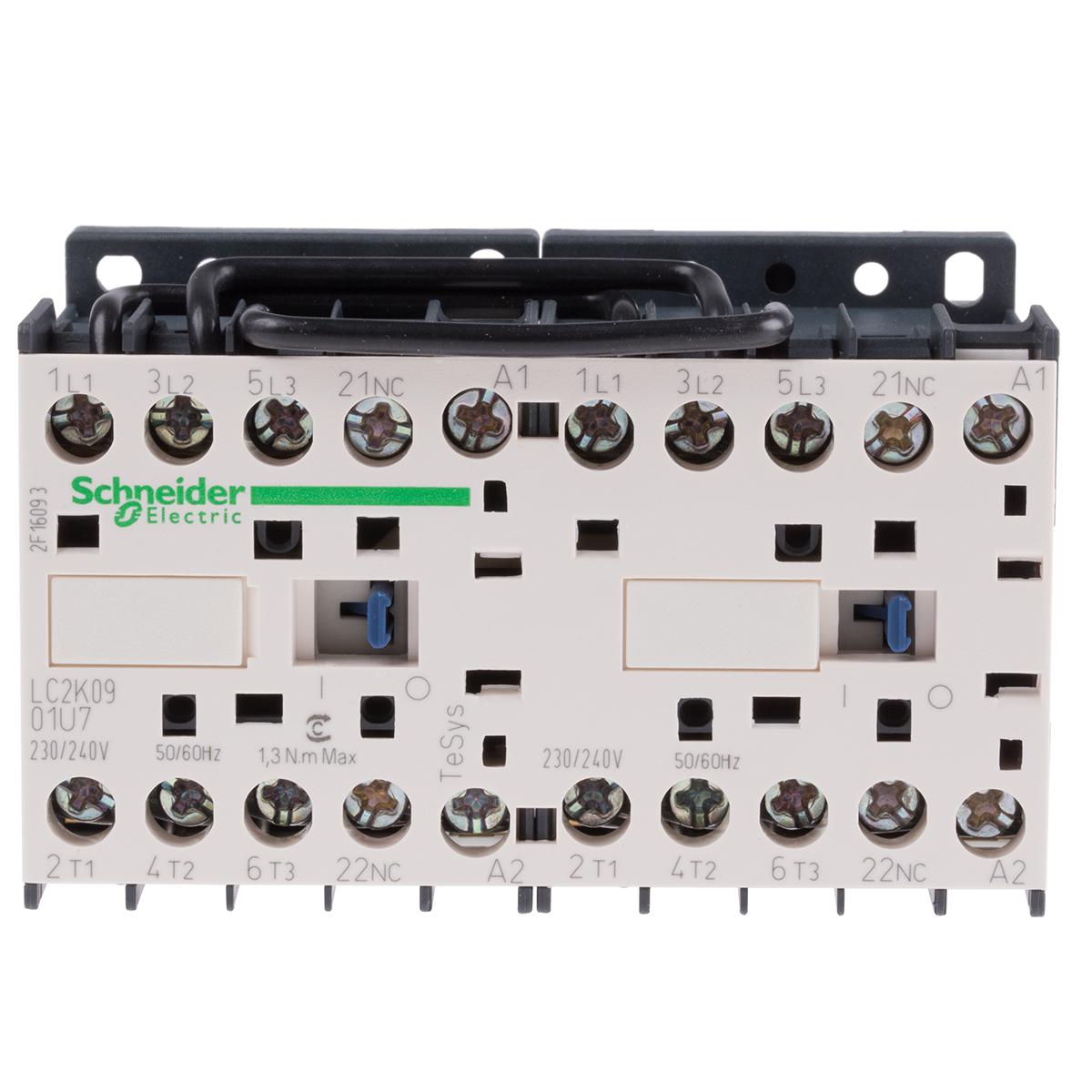 This is TeSys K LC2K 3 Pole Reversing Contactor 3NO (Main) NC (Auxiliary) 9 A 230 → 240 V ac Coil manufactured by Schneider Electric. The manufacturer part number is LC2K0901U7. It performs basic function of reversing. The product lc2k, is a highly preferred choice for users. The coil voltage of the product is 230 v ac. Its accurate length is 58mm. Furthermore, the product is 90mm wide. The product comes in 57mm depth. It has equipped with 3 poles. The terminal is a screw type.