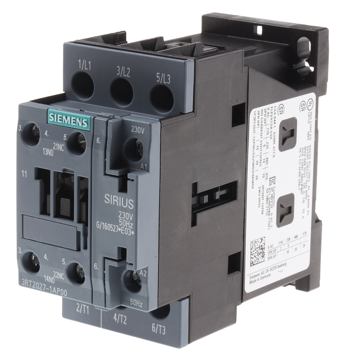 This is Sirius Innovation 3RT2 3 Pole Contactor 3NO 32 A (AC3) 15 kW (AC3) 230 V ac Coil manufactured by Siemens. The manufacturer part number is 3RT2027-1AP00. It performs basic function of 3-phase motor monitoring. It has a maximum operating temperature of +60°c. It has a typical 27a load current. The product 3rt2, is a highly preferred choice for users. Whereas, the minimum operating temperature of the product is -25°c. The coil voltage of the product is 230 v ac. Its accurate length is 85mm. Furthermore, the product is 45mm wide. The product comes in 97mm depth. It has equipped with 3 poles. The terminal is a screw type.