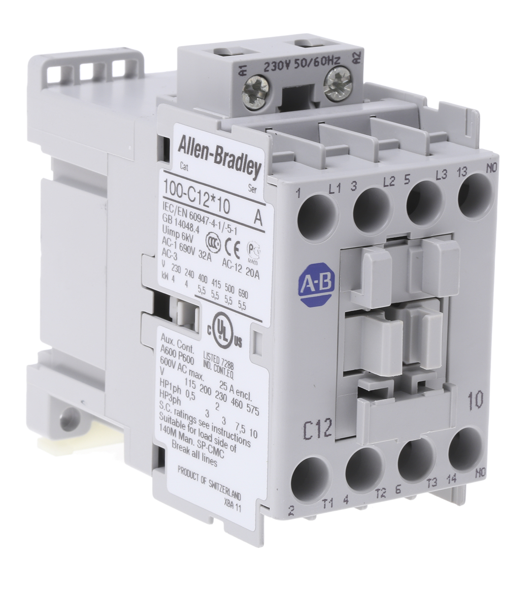 This is 100 Series 100C 3 Pole Coil Contactor 12 A 5.5 kW 230 V ac Coil manufactured by Allen Bradley. The manufacturer part number is 100-C12KF10. It performs basic function of motor control. It has a maximum operating temperature of +60°c. The product 100c, is a highly preferred choice for users. Whereas, the minimum operating temperature of the product is -25°c. The coil voltage of the product is 230 v ac. Its accurate length is 81mm. Furthermore, the product is 45mm wide. The product comes in 86.5mm depth. It has equipped with 3 poles. The terminal is a screw type.