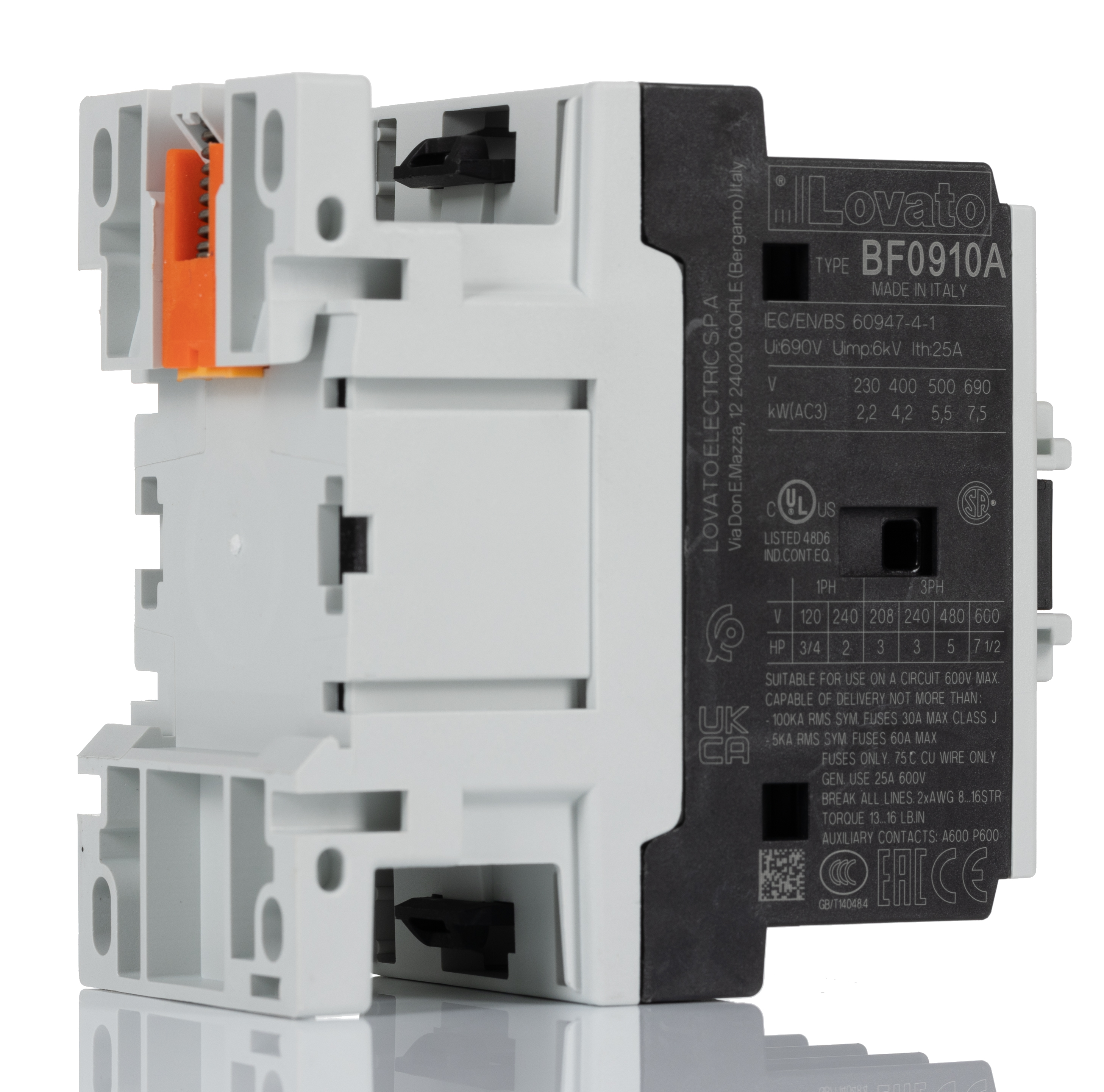 This is BF 3 Pole Contactor 9 A 4 kW 230 V ac Coil manufactured by Lovato. The manufacturer part number is BF0910A230. It has a maximum operating temperature of +70°c. The product bf, is a highly preferred choice for users. Whereas, the minimum operating temperature of the product is -50°c. The coil voltage of the product is 230 v ac. Its accurate length is 81mm. Furthermore, the product is 45mm wide. The product comes in 80.7mm depth. It has equipped with 3 poles. The terminal is a screw type.