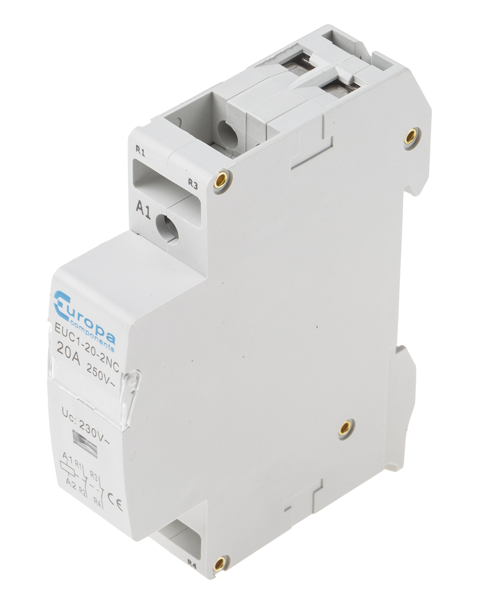 This is 2 Pole Contactor 20 A 4 kW 230 V ac Coil manufactured by Europa. The manufacturer part number is EUC1-20-2NC. The coil voltage of the product is 230 v ac. Its accurate length is 18mm. Furthermore, the product is 87.5mm wide. The product comes in 68mm depth. It has equipped with 2 poles. The terminal is a screw type.