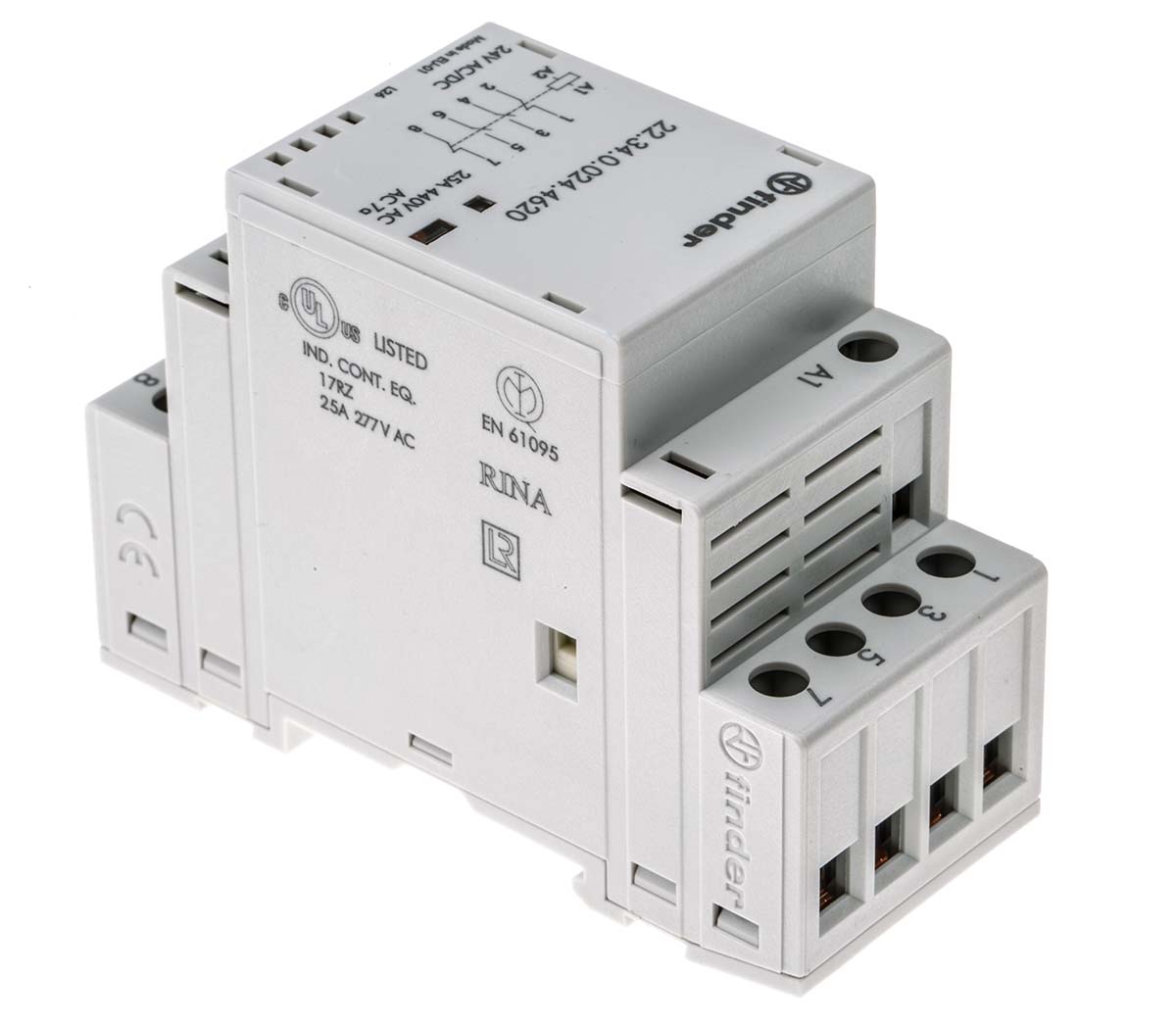 This is 22 Series 4 Pole Contactor 2NO/2NC 25 A 2 VA 24 V Coil manufactured by Finder. The manufacturer part number is 22.34.0.024.4620. It has a maximum operating temperature of +50°c. The product 22 series, is a highly preferred choice for users. Whereas, the minimum operating temperature of the product is -20°c. The coil voltage of the product is 24 v ac. Its accurate length is 35mm. Furthermore, the product is 35mm wide. The product comes in 60.8mm depth. It has equipped with 4 poles. The terminal is a screw type.