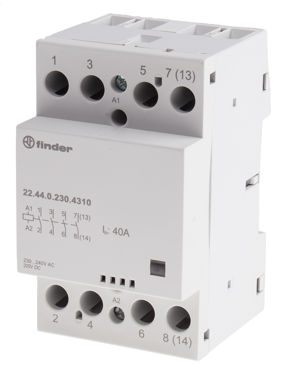 This is 4NO Non-Latching Relay DIN Rail 240V ac Coil 40 A manufactured by Finder. The manufacturer part number is 22.44.0.230.4310. The product 22 series, is a highly preferred choice for users. The coil voltage of the product is 240 v ac. Its accurate length is 53.5mm. The product comes in 63.1mm depth. Whereas, the minimum operating temperature of the product is -5°c. It has a maximum operating temperature of +55°c. It has equipped with 4 poles. The terminal is a screw type.