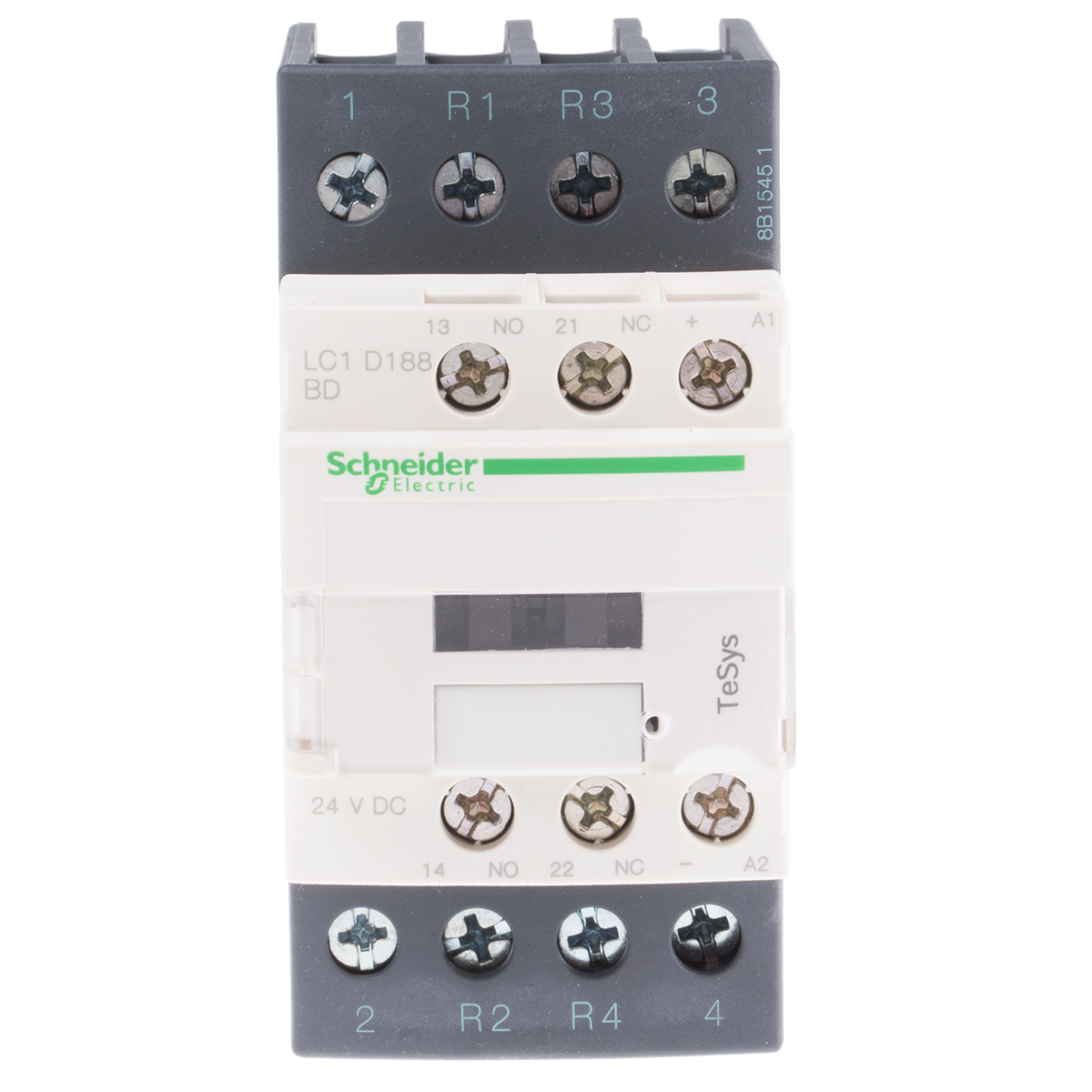 This is Tesys D LC1D 4 Pole Contactor 2NO/2NC (Main) NO/NC (Auxiliary) 32 A 24 V dc Coil manufactured by Schneider Electric. The manufacturer part number is LC1D188BD. The product lc1d, is a highly preferred choice for users. The coil voltage of the product is 24 v dc. Its accurate length is 91mm. Furthermore, the product is 45mm wide. The product comes in 107mm depth. It has equipped with 4 poles. The terminal is a screw type.