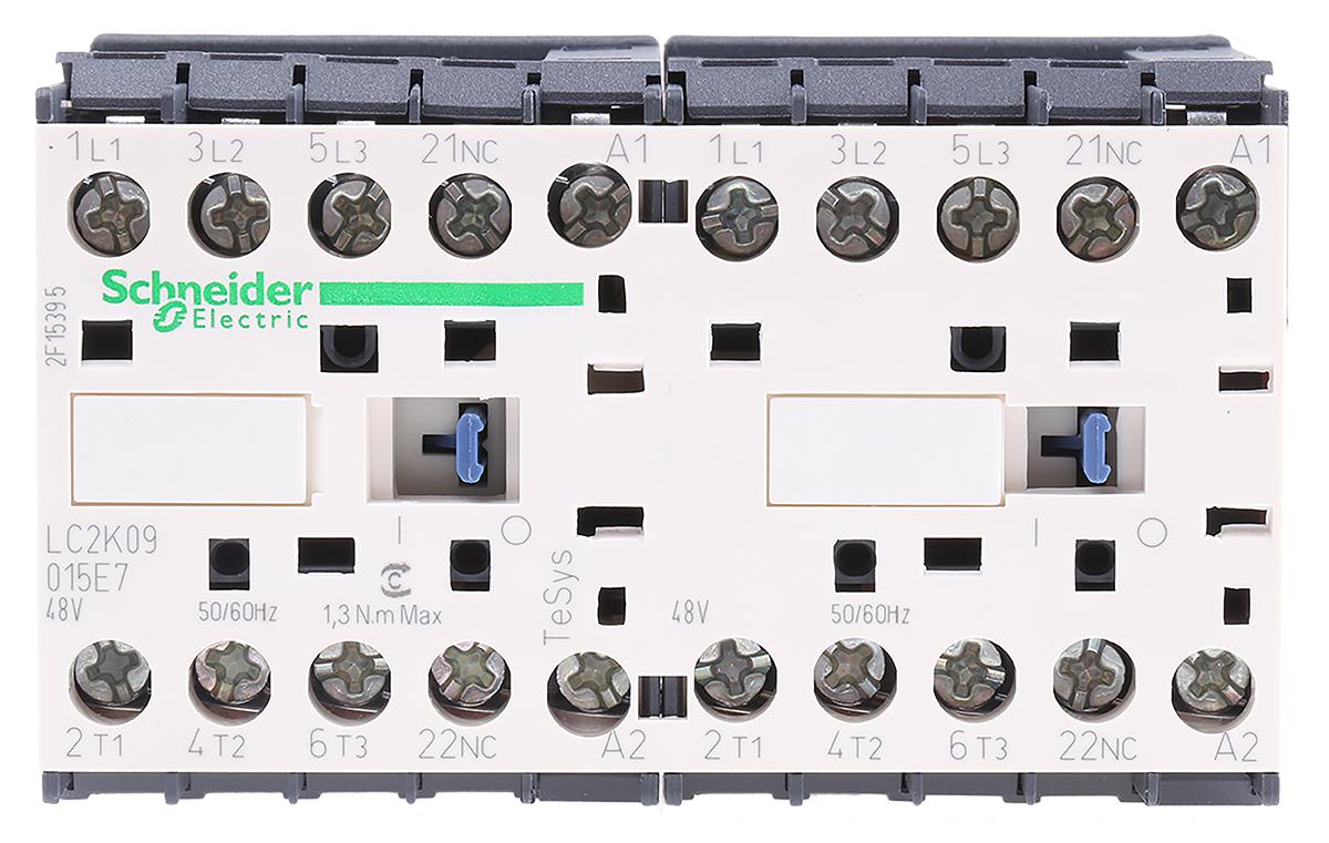 This is TeSys K LC2K 3 Pole Reversing Contactor 3NO 9 A 4 kW 48 V ac Coil manufactured by Schneider Electric. The manufacturer part number is LC2K09015E7. It performs basic function of reversing. It has a maximum operating temperature of +50°c. The product lc2k, is a highly preferred choice for users. Whereas, the minimum operating temperature of the product is -25°c. The coil voltage of the product is 48 v ac. Its accurate length is 58mm. Furthermore, the product is 90mm wide. The product comes in 57mm depth. It has equipped with 3 poles. The terminal is a screw type.