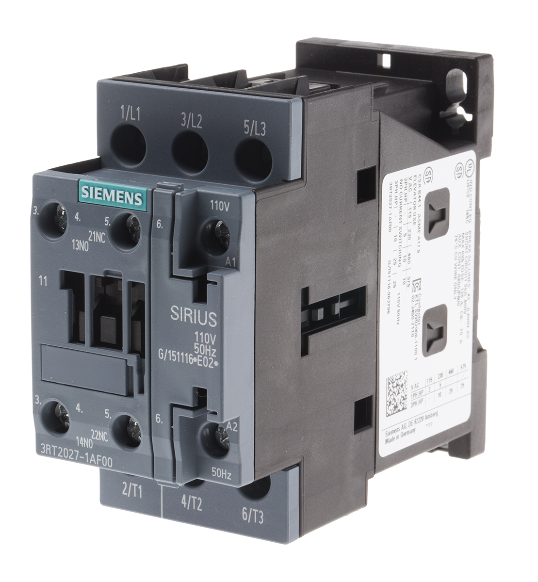 This is Sirius Innovation 3RT2 3 Pole Contactor 3NO 32 A (AC3) 15 kW (AC3) 110 V ac Coil manufactured by Siemens. The manufacturer part number is 3RT2027-1AF00. It has a maximum operating temperature of +60°c. The product 3rt2, is a highly preferred choice for users. Whereas, the minimum operating temperature of the product is -25°c. The coil voltage of the product is 110 v ac. Its accurate length is 85mm. Furthermore, the product is 45mm wide. The product comes in 97mm depth. It has equipped with 3 poles. The terminal is a screw type.