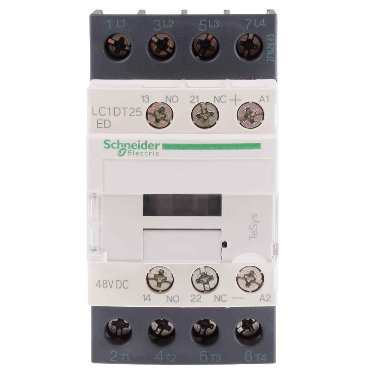 This is Tesys D LC1D 4 Pole Contactor 4NO (Main) NO (Auxiliary) 25 A 48 V dc Coil manufactured by Schneider Electric. The manufacturer part number is LC1DT25ED. The product lc1d, is a highly preferred choice for users. The coil voltage of the product is 48 v dc. Its accurate length is 85mm. Furthermore, the product is 45mm wide. The product comes in 99mm depth. It has equipped with 4 poles. The terminal is a screw type.