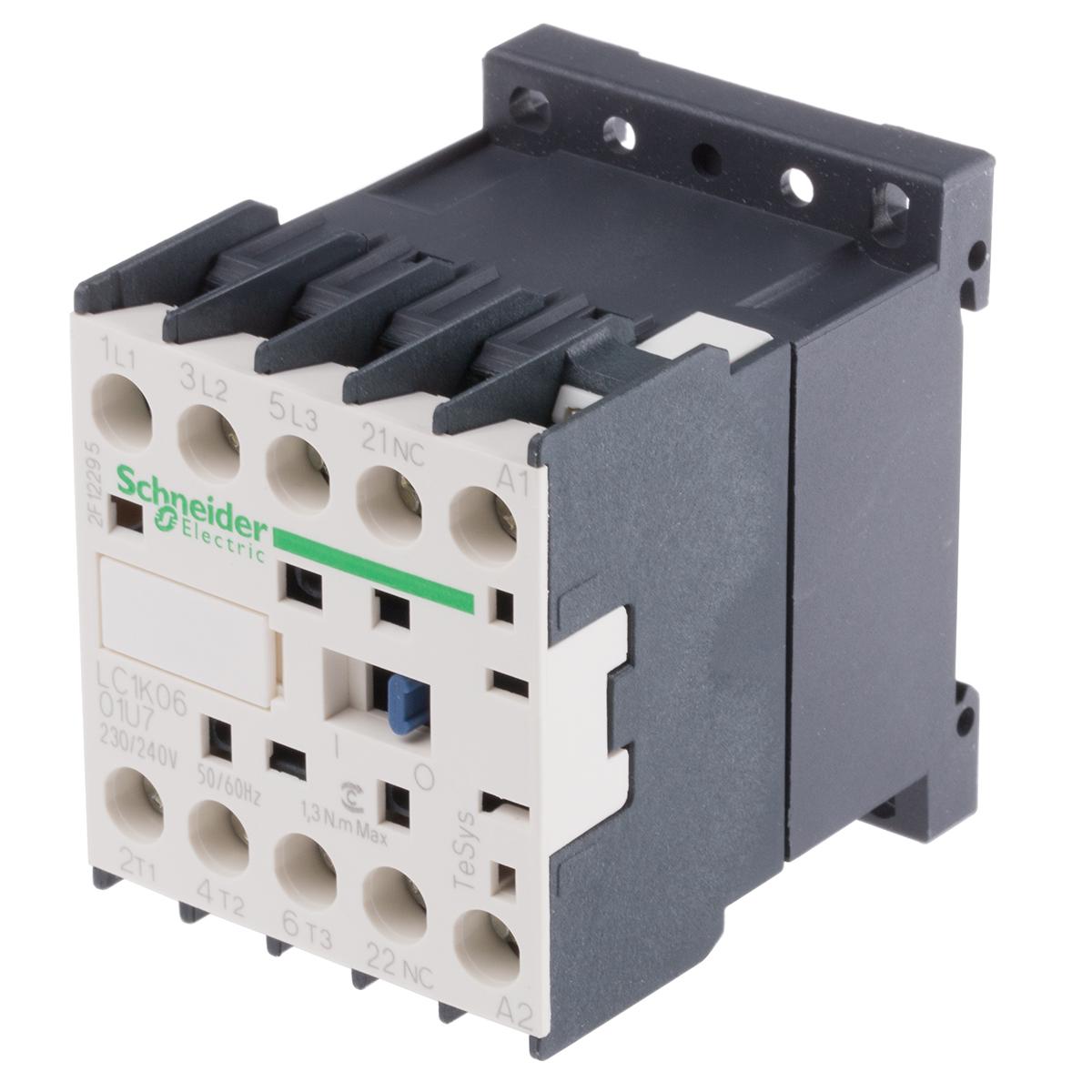 This is TeSys K LC1K 3 Pole Contactor 3NO (Main) NC (Auxiliary) 6 A 230 V ac 240 V ac Coil manufactured by Schneider Electric. The manufacturer part number is LC1K0601U7. The product lc1k, is a highly preferred choice for users. The coil voltage of the product is 230 v ac. Its accurate length is 58mm. Furthermore, the product is 45mm wide. The product comes in 57mm depth. It has equipped with 3 poles. The terminal is a screw type.