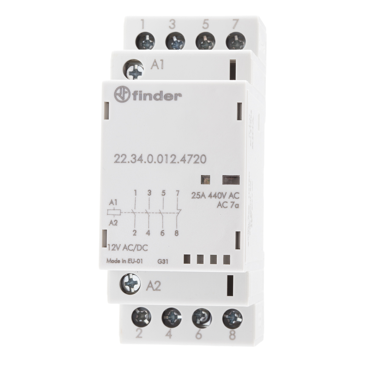 This is 22 Series 4 Pole Contactor 3NO/NC 25 A 2 VA 12 V Coil manufactured by Finder. The manufacturer part number is 22.34.0.012.4720. It has a maximum operating temperature of +50°c. The product 22 series, is a highly preferred choice for users. Whereas, the minimum operating temperature of the product is -20°c. The coil voltage of the product is 12 v dc. Its accurate length is 35mm. Furthermore, the product is 35mm wide. The product comes in 60.8mm depth. It has equipped with 4 poles. The terminal is a screw type.
