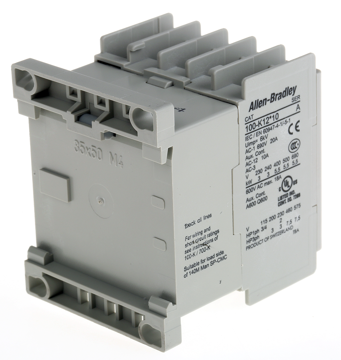 This is 100 Series 100K 3 Pole Contactor 12 A 5.5 kW 24 V dc Coil manufactured by Allen Bradley. The manufacturer part number is 100-K12DJ10. It performs basic function of motor control. It has a maximum operating temperature of +60°c. The product 100k, is a highly preferred choice for users. Whereas, the minimum operating temperature of the product is -25°c. The coil voltage of the product is 24 v dc. Its accurate length is 108.2mm. Furthermore, the product is 44.9mm wide. The product comes in 82.7mm depth. It has equipped with 3 poles. The terminal is a screw type.