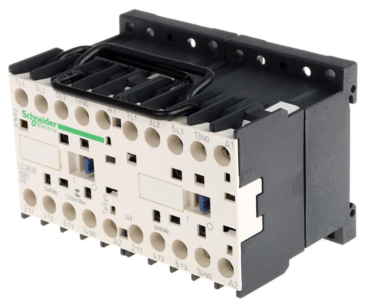 This is TeSys K LC2K 3 Pole Reversing Contactor 6 A 3 kW 24 V ac Coil manufactured by Schneider Electric. The manufacturer part number is LC2K0610B7. It performs basic function of reversing. It has a maximum operating temperature of +50°c. The product lc2k, is a highly preferred choice for users. Whereas, the minimum operating temperature of the product is -25°c. The coil voltage of the product is 24 v ac. Its accurate length is 73.15mm. Furthermore, the product is 90mm wide. The product comes in 56.8mm depth. It has equipped with 3 poles. The terminal is a screw type.