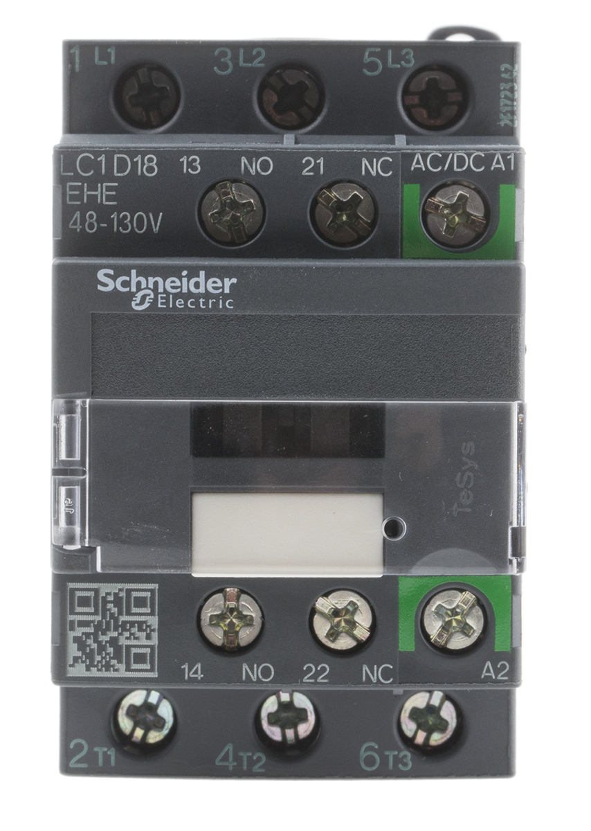 This is Tesys D LC1D 3 Pole Contactor 3NO 18 A 7.5 kW V ac @ 380 to 400 110 V ac/dc Coil manufactured by Schneider Electric. The manufacturer part number is LC1D18EHE. It has a maximum operating temperature of +60°c. The product lc1d, is a highly preferred choice for users. Whereas, the minimum operating temperature of the product is -25°c. The coil voltage of the product is 110 v ac/dc. Its accurate length is 45mm. Furthermore, the product is 86mm wide. The product comes in 77mm depth. It has equipped with 3 poles. The terminal is a screw type.