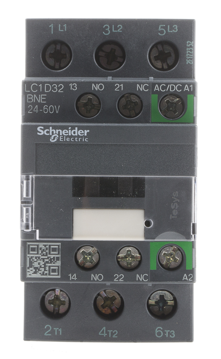 This is TeSys D Green LC1D 3 Pole Contactor 3NO 32 A 15 kW V ac @ 380 → 400 manufactured by Schneider Electric. The manufacturer part number is LC1D32BNE. It has a maximum operating temperature of +60°c. The product lc1d, is a highly preferred choice for users. Whereas, the minimum operating temperature of the product is -25°c. The coil voltage of the product is 24 v ac/dc. Its accurate length is 45mm. Furthermore, the product is 92mm wide. The product comes in 85mm depth. It has equipped with 3 poles. The terminal is a screw type.