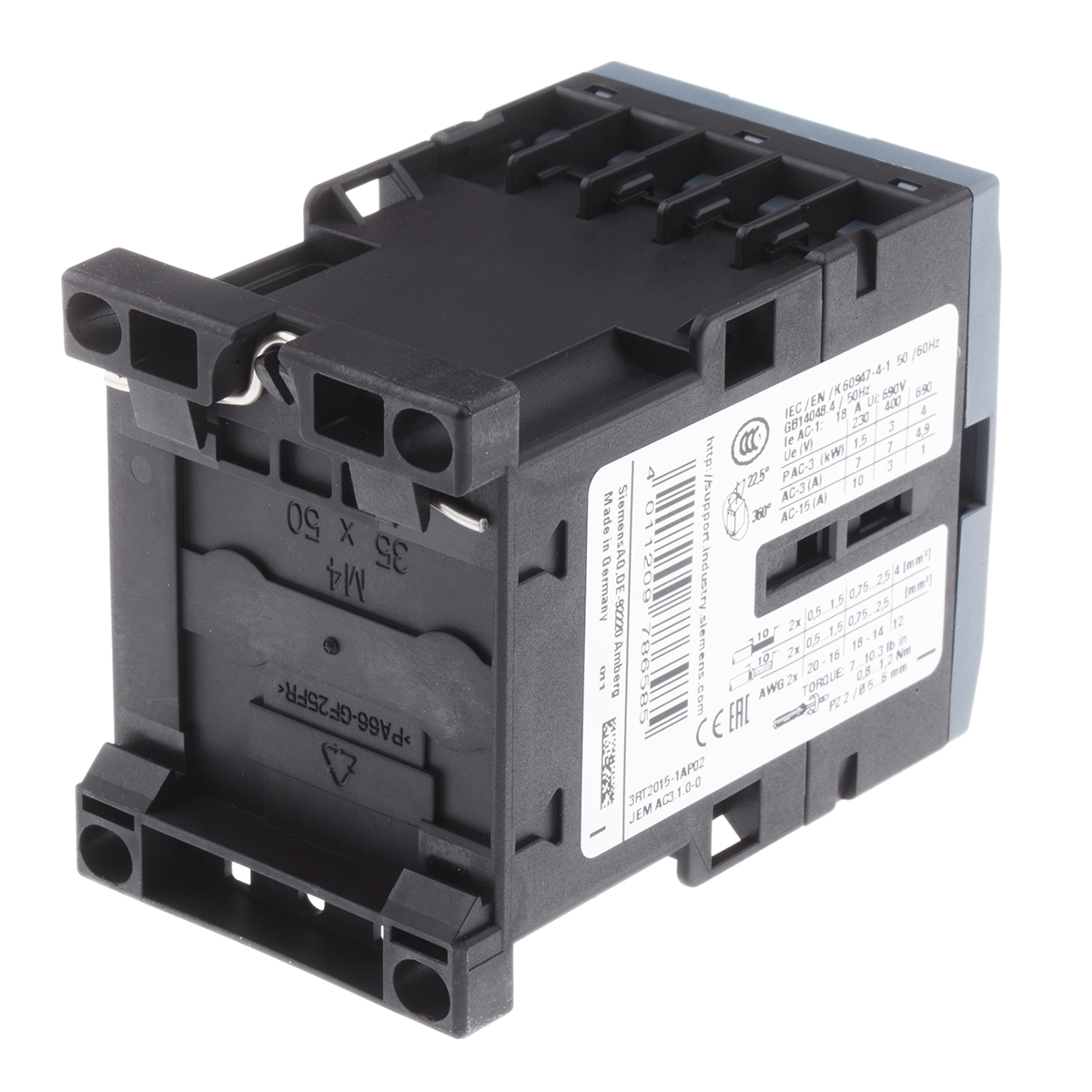 This is Sirius Innovation 3RT2 3 Pole Contactor 3NO 7 A (AC3) 3 kW (AC3) 230 V ac Coil manufactured by Siemens. The manufacturer part number is 3RT2015-1AP02. It has a maximum operating temperature of +60°c. The product 3rt2, is a highly preferred choice for users. Whereas, the minimum operating temperature of the product is -25°c. The coil voltage of the product is 230 v ac. Its accurate length is 57.5mm. Furthermore, the product is 45mm wide. The product comes in 73mm depth. It has equipped with 3 poles. The terminal is a screw type.