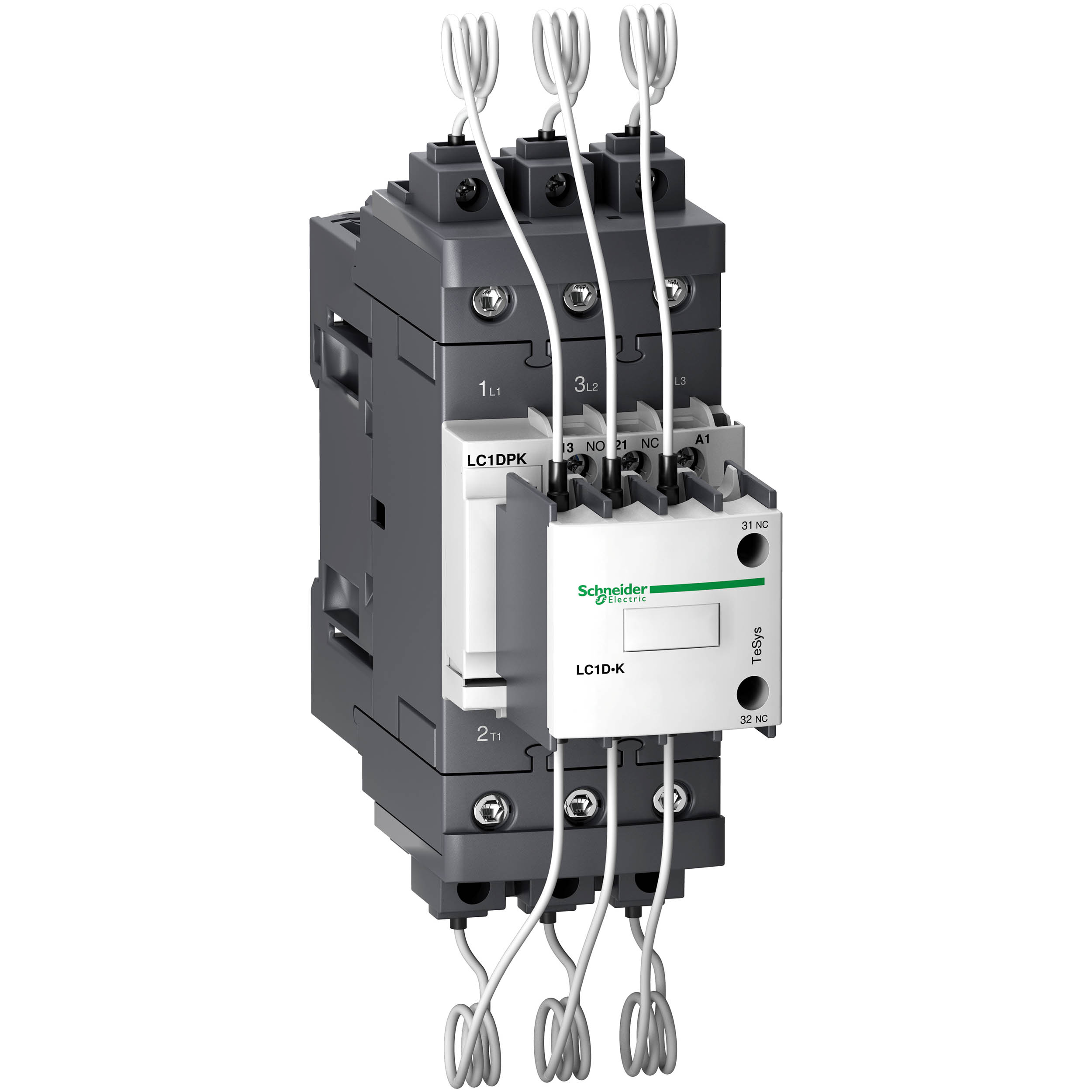 This is TeSys 3 Pole Capacitor Switching Contactor 230 V ac Coil 2NC + 1NO manufactured by Schneider Electric. The manufacturer part number is LC1DPKP7. It performs basic function of capacitor switching. The coil voltage of the product is 230 v ac. It has equipped with 3 poles.