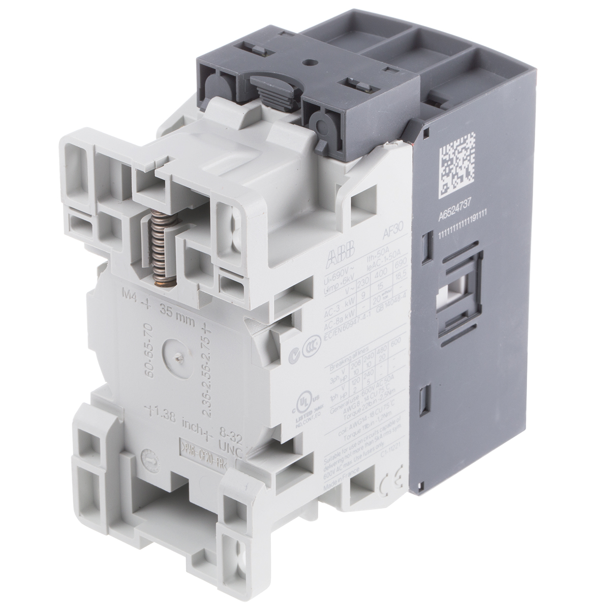 This is AF Range AF30 3 Pole Contactor - 21 A 230 V ac/dc Coil 3NO 15 kW manufactured by ABB. The manufacturer part number is 1SBL277001R1400 AF30-30-00-14. It has a maximum operating temperature of +70°c. The product af, is a highly preferred choice for users. Whereas, the minimum operating temperature of the product is -40°c. The coil voltage of the product is 250 → 500 v ac/dc. Its accurate length is 86mm. Furthermore, the product is 45mm wide. The product comes in 86mm depth. It has equipped with 3 poles. The terminal is a screw type.