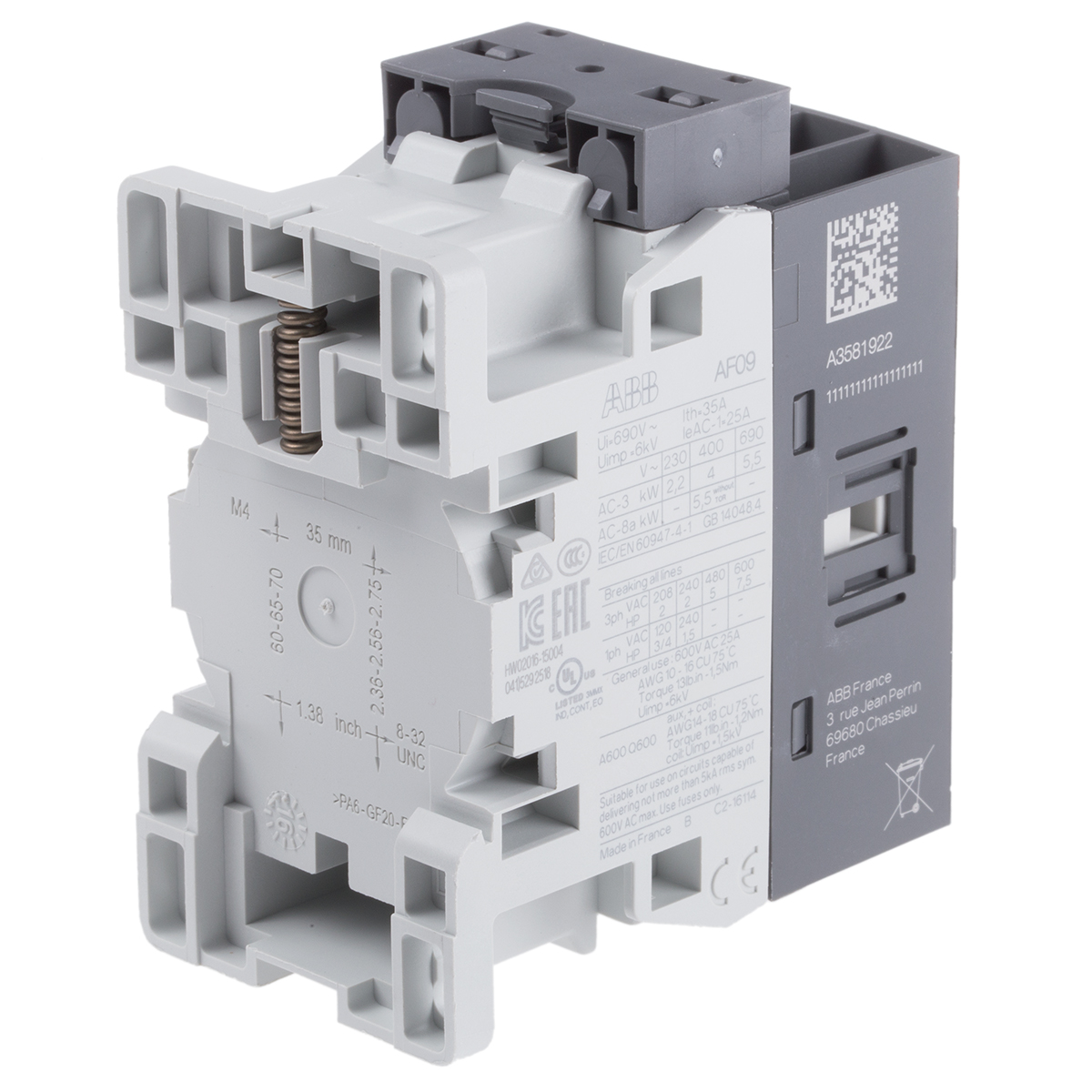 This is AF Range AF09 3 Pole Contactor - 25 A 24 V ac/dc Coil 3NO 4 kW manufactured by ABB. The manufacturer part number is 1SBL137001R1101 AF09-30-01-11. It has a maximum operating temperature of +60°c. The product af, is a highly preferred choice for users. Whereas, the minimum operating temperature of the product is -25°c. The coil voltage of the product is 24 v ac/dc. Its accurate length is 86mm. Furthermore, the product is 45mm wide. The product comes in 77mm depth. It has equipped with 3 poles. The terminal is a screw type.