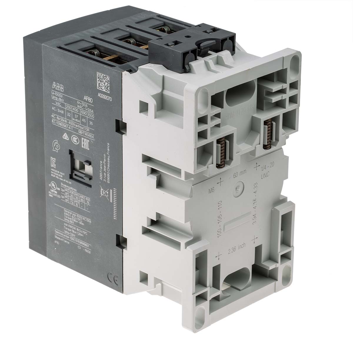 This is AF Range AF80 3 Pole Contactor - 125 A 230 V ac Coil 3NO 37 kW manufactured by ABB. The manufacturer part number is 1SBL397001R1300 AF80-30-00-13. It has a maximum operating temperature of +70°c. The product af, is a highly preferred choice for users. Whereas, the minimum operating temperature of the product is -40°c. The coil voltage of the product is 230 v ac. Its accurate length is 70mm. Furthermore, the product is 125.5mm wide. The product comes in 116mm depth. It has equipped with 3 poles. The terminal is a screw type.