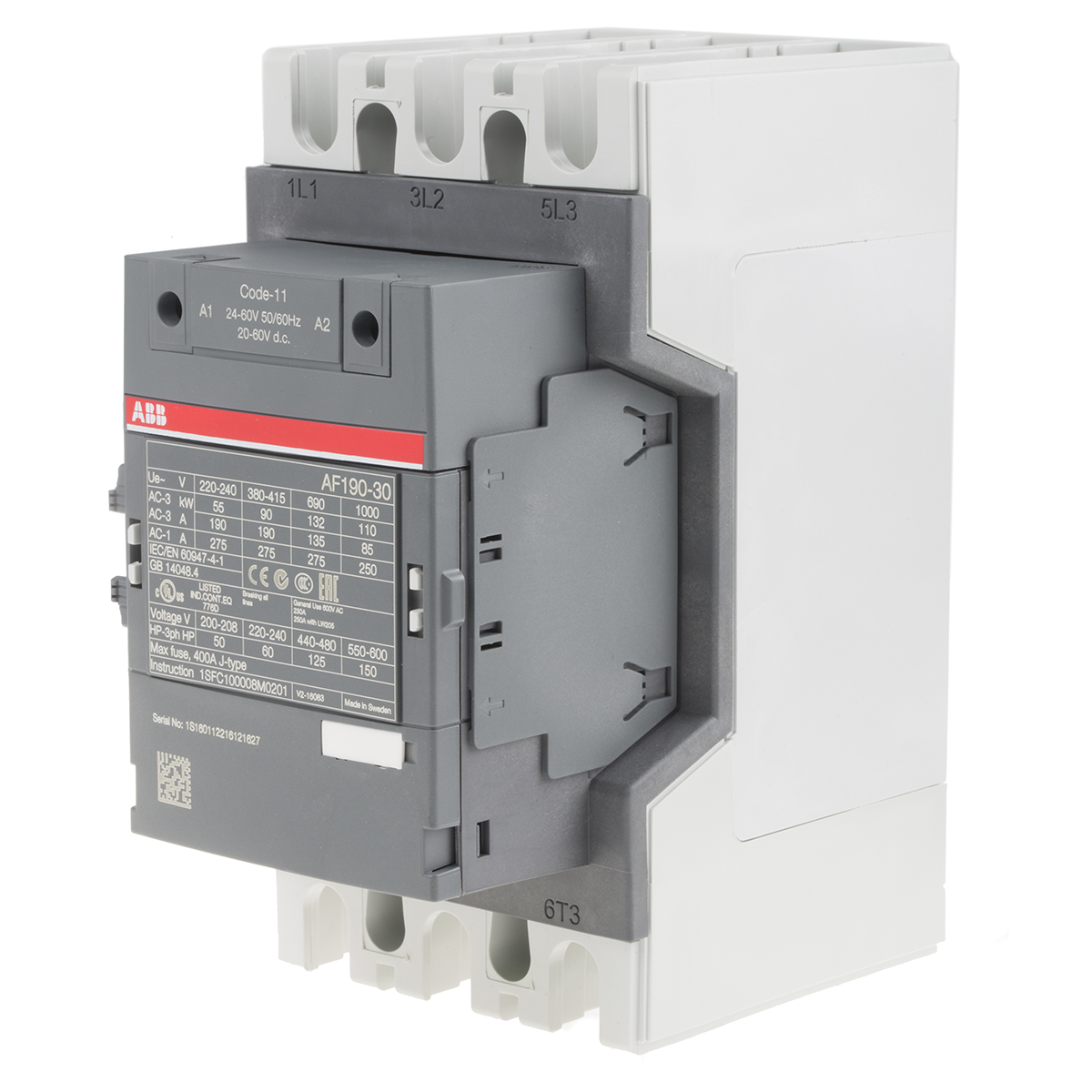 This is AF Range AF190 3 Pole Contactor - 275 A 24 V ac/dc Coil 3NO 90 kW manufactured by ABB. The manufacturer part number is 1SFL487002R1111 AF190-30-11-11. It has a maximum operating temperature of +70°c. The product af, is a highly preferred choice for users. Whereas, the minimum operating temperature of the product is -40°c. The coil voltage of the product is 24 v ac/dc. Its accurate length is 105mm. Furthermore, the product is 196mm wide. The product comes in 152mm depth. It has equipped with 3 poles. The terminal is a lug ring terminal type.