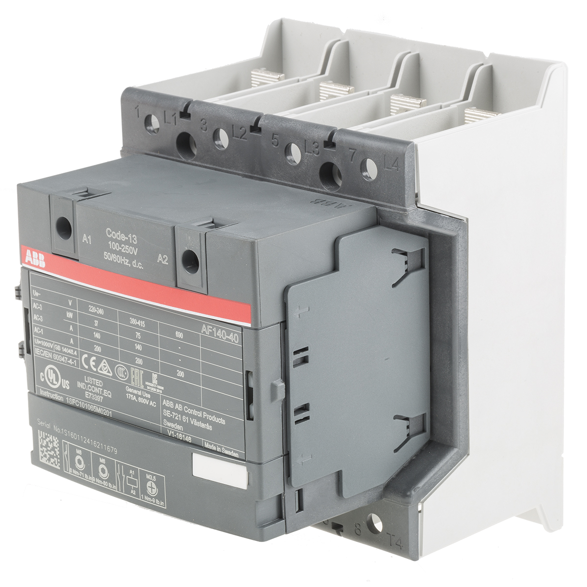 This is AF Range AF116 4 Pole Contactor - 200 A 230 V ac Coil 4NO 75 kW manufactured by ABB. The manufacturer part number is 1SFL447102R1311 AF140-40-11B-13. It has a maximum operating temperature of +70°c. The product af, is a highly preferred choice for users. Whereas, the minimum operating temperature of the product is -40°c. The coil voltage of the product is 230 v ac. Its accurate length is 150mm. Furthermore, the product is 120mm wide. The product comes in 128.1mm depth. It has equipped with 4 poles. The terminal is a screw type.