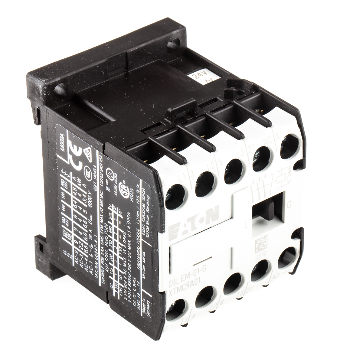This is xStart DILEM 3 Pole Contactor - 9 A 24 V dc Coil 3NO 4 kW manufactured by Eaton. The manufacturer part number is 010343 DILEM-01-G(24VDC). It has a maximum operating temperature of +40°c. The product eaton moeller, is a highly preferred choice for users. The coil voltage of the product is 24 v dc. Its accurate length is 58mm. Furthermore, the product is 45mm wide. The product comes in 83mm depth. Whereas, the minimum operating temperature of the product is -25°c. It has equipped with 3 poles. The terminal is a screw type.