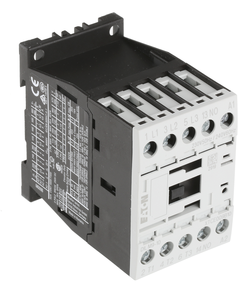 This is xStart DILM 3 Pole Contactor - 9 A 230 V ac Coil 3NO 4 kW manufactured by Eaton. The manufacturer part number is 276690 DILM9-10(230V50HZ,240V60HZ). It has a maximum operating temperature of +40°c. The product eaton moeller, is a highly preferred choice for users. Whereas, the minimum operating temperature of the product is -25°c. The coil voltage of the product is 230 v ac. Its accurate length is 68mm. Furthermore, the product is 45mm wide. The product comes in 117mm depth. It has equipped with 3 poles. The terminal is a screw type.