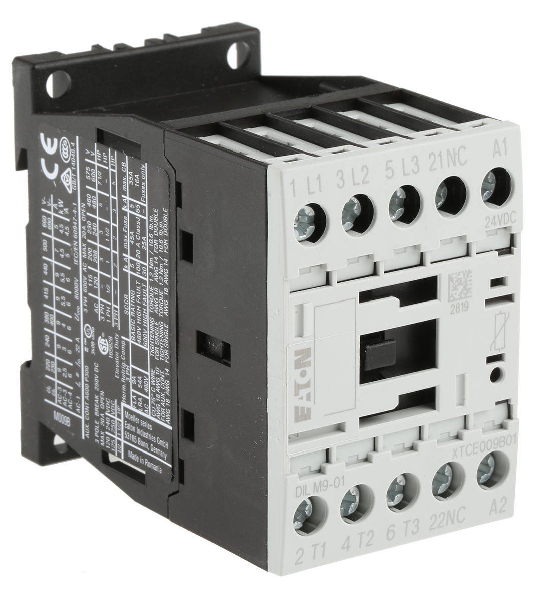 This is xStart DILM 3 Pole Contactor - 9 A 24 V dc Coil 3NO 4 kW manufactured by Eaton. The manufacturer part number is 276740 DILM9-01(24VDC). It has a maximum operating temperature of +40°c. The product eaton moeller, is a highly preferred choice for users. Whereas, the minimum operating temperature of the product is -25°c. The coil voltage of the product is 24 v dc. Its accurate length is 68mm. Furthermore, the product is 45mm wide. The product comes in 117mm depth. It has equipped with 3 poles. The terminal is a screw type.