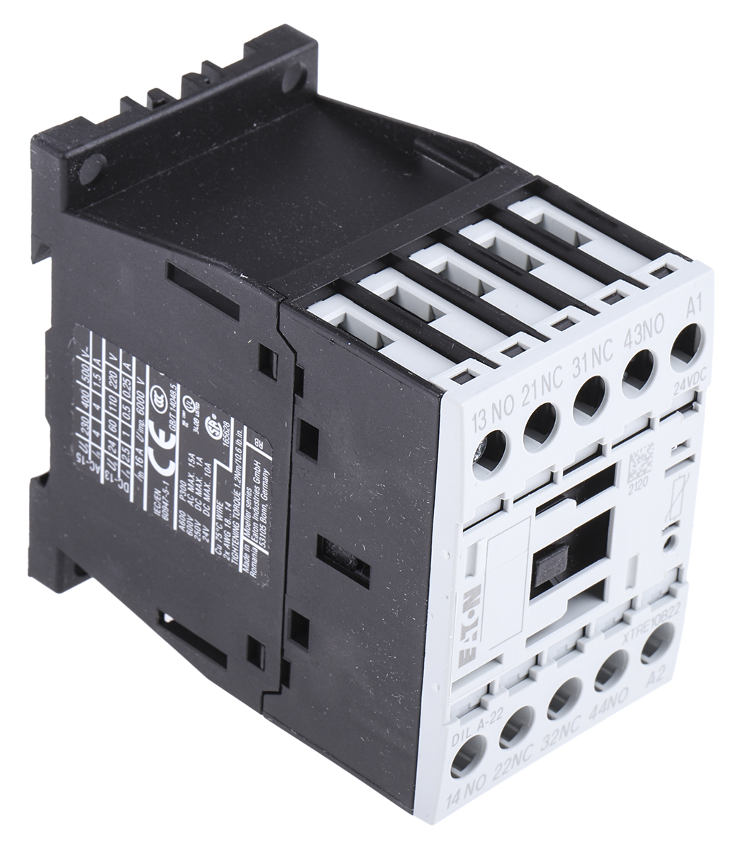 This is Contactor Relay - 2NO + 2NC 4 A Contact Rating xStart manufactured by Eaton. The manufacturer part number is 276414 DILA-22(24VDC). It has a maximum operating temperature of +60°c. The product eaton moeller, is a highly preferred choice for users. Whereas, the minimum operating temperature of the product is -25°c. The coil voltage of the product is 24 v dc. Its accurate length is 45mm. Furthermore, the product is 68mm wide. The product comes in 125.2mm depth. It has equipped with 4 poles. The terminal is a screw type.